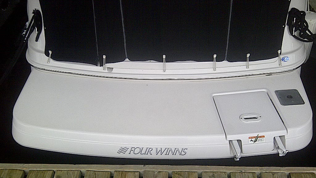 The factory trailer is as clean as the boat having had very little use and indoor storage when not in use. Conveniences include air/heat, microwave, hot water, am/fm/cd player, ac/dc refridgerator, bumpers, lines, anchor and current safety equipment. The pieces that turn the rear seating area into a huge sunpad are included and have never been used. This option was ONLY available on the 2006 Four Winns 248 Anniversary model.