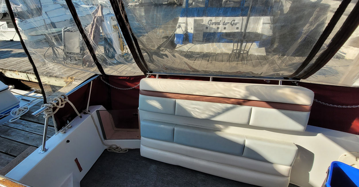 The boat is equipped with a dual power refridgerator, trim tabs,